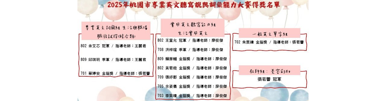 | 事項內容 | 賀本校802王惠君同學參加桃園市113年度小桃子樂園網路徵文競賽第2期徵選,榮獲國中作文組入選 |