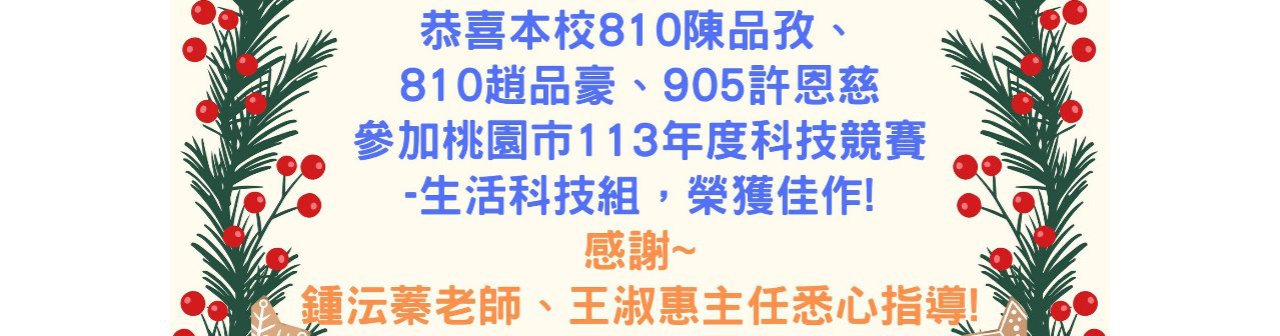 | 事項內容 | 本校8年級同學唐羽加、吳旻原、倪沁政參加IEYI世界青少年創客發明展台灣區選拔賽榮獲安全健康類金牌獎 本校8年級同學蔡雨彤參加IEYI世界青少年創客發明展台灣區選拔賽榮獲教育類佳作 感謝隆期老師、丞偉老師費心指導 |