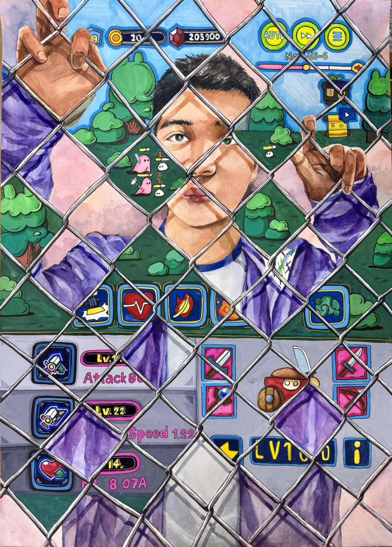 賀本校九年級羅富和同學在114學年度全國學生美術比賽中,以作品《虛擬牢籠GameOver》榮獲漫畫類—甲等殊榮!此項殊榮,彰顯富和的努力與才華,亦為本校增添光彩。期盼富和未來在藝術創作的道路上持續精進,再創佳績。#平興國中全體師生仝賀